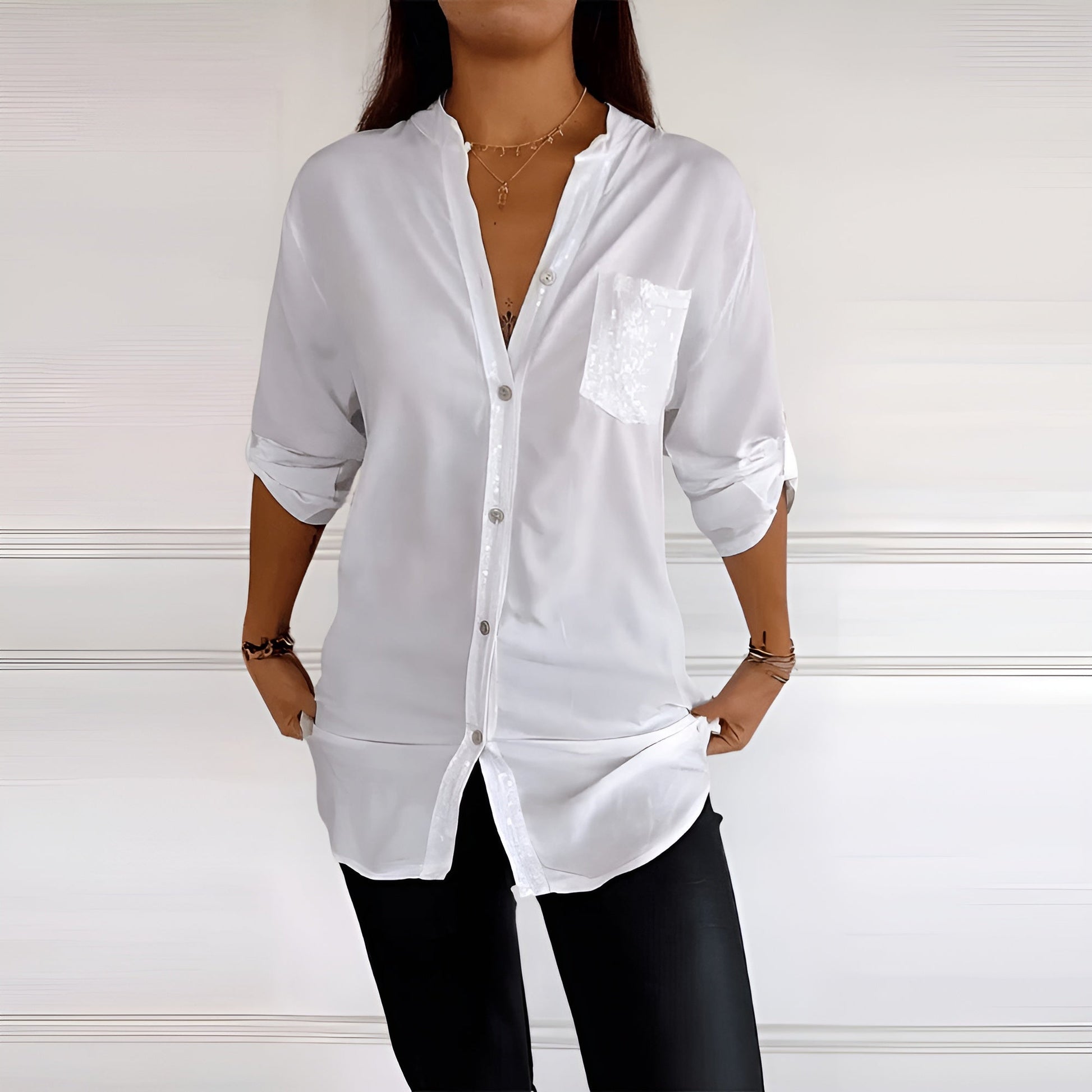 Esta camisa combina confort y moda para mujeres modernas, y es adecuada tanto para ocasiones casuales como chic, con un ajuste perfecto y versatilidad.