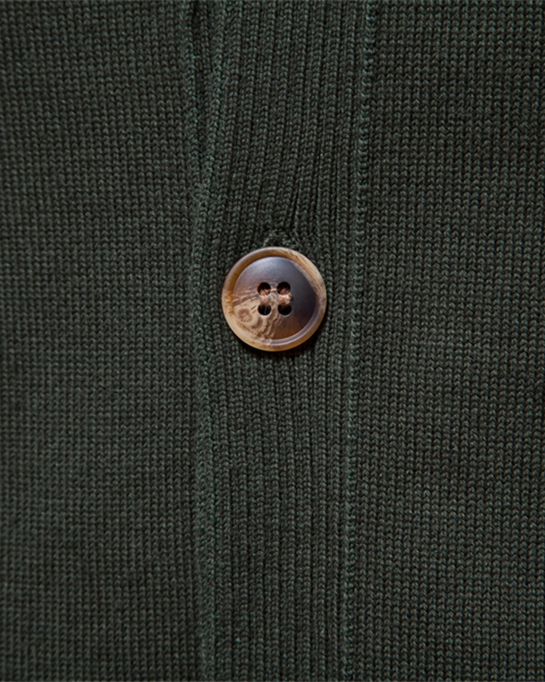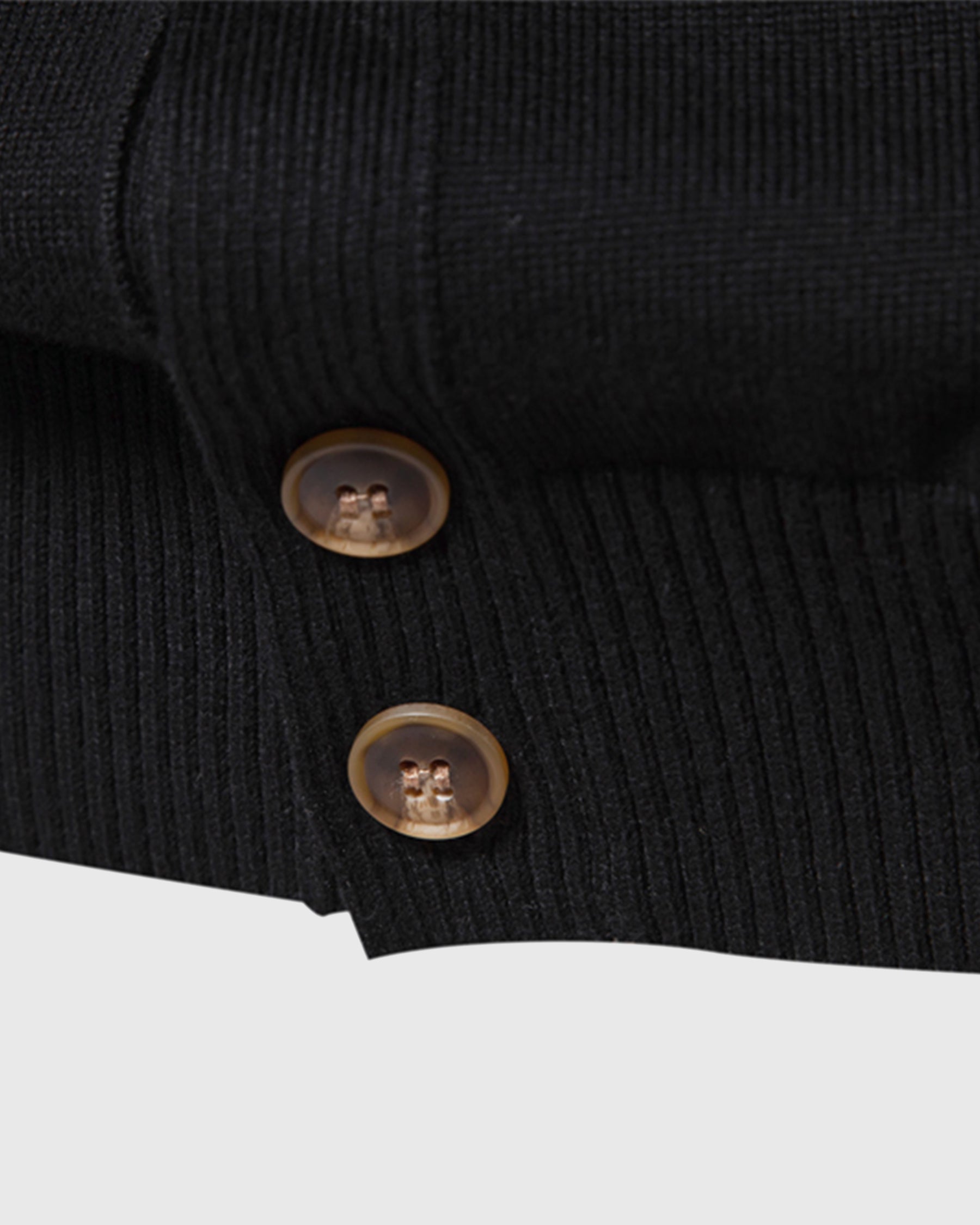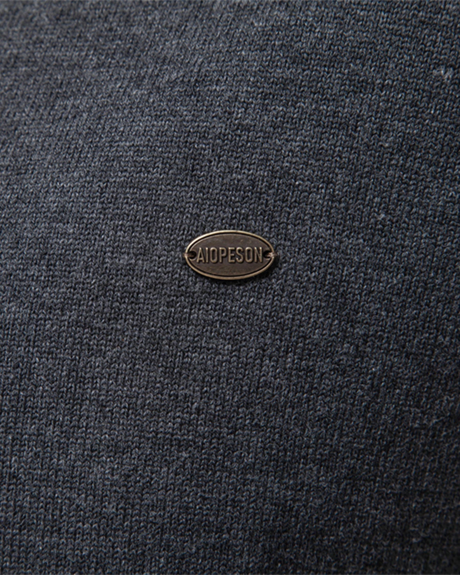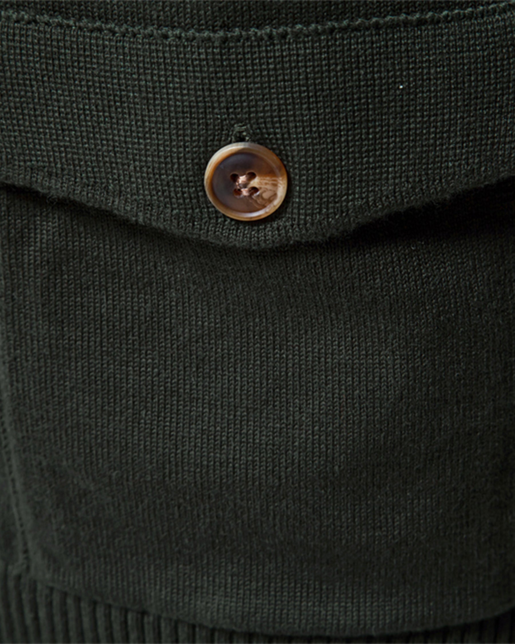 Esta chaqueta de punto gris claro para hombres combina estilo y funcionalidad. Cuenta con un cuello alto, una franja de botones y dos bolsillos inferiores. Con su ajuste ceñido y sutil logotipo de la marca, es versátil para ocasiones informales y semi-formales.