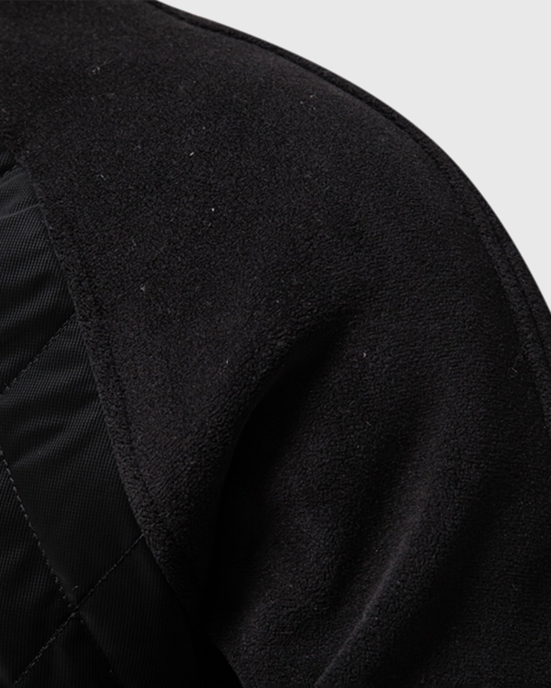 Las mangas y los hombros contrastantes tipo peluche aportan un toque de textura y lujo, ofreciendo una variación refinada del estilo clásico de la chaqueta bomber.