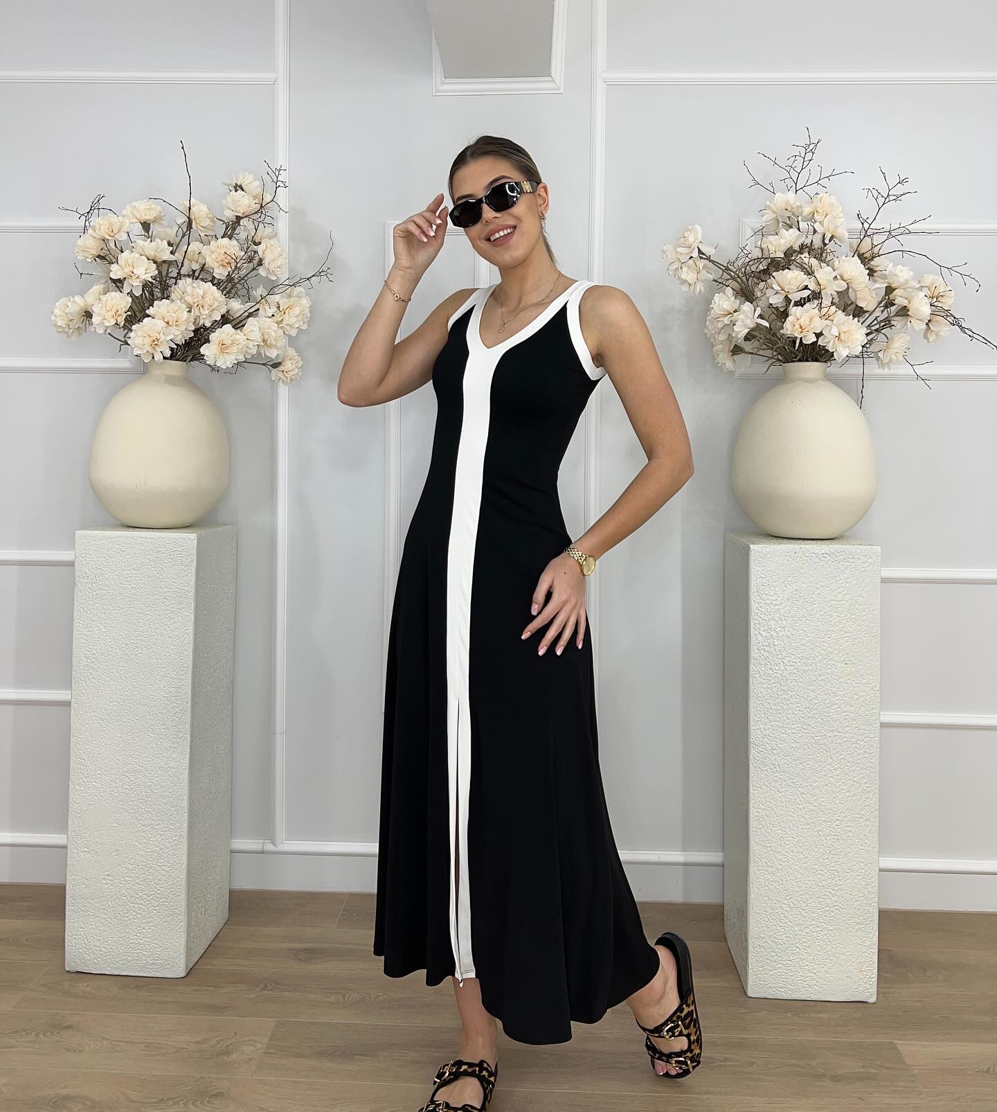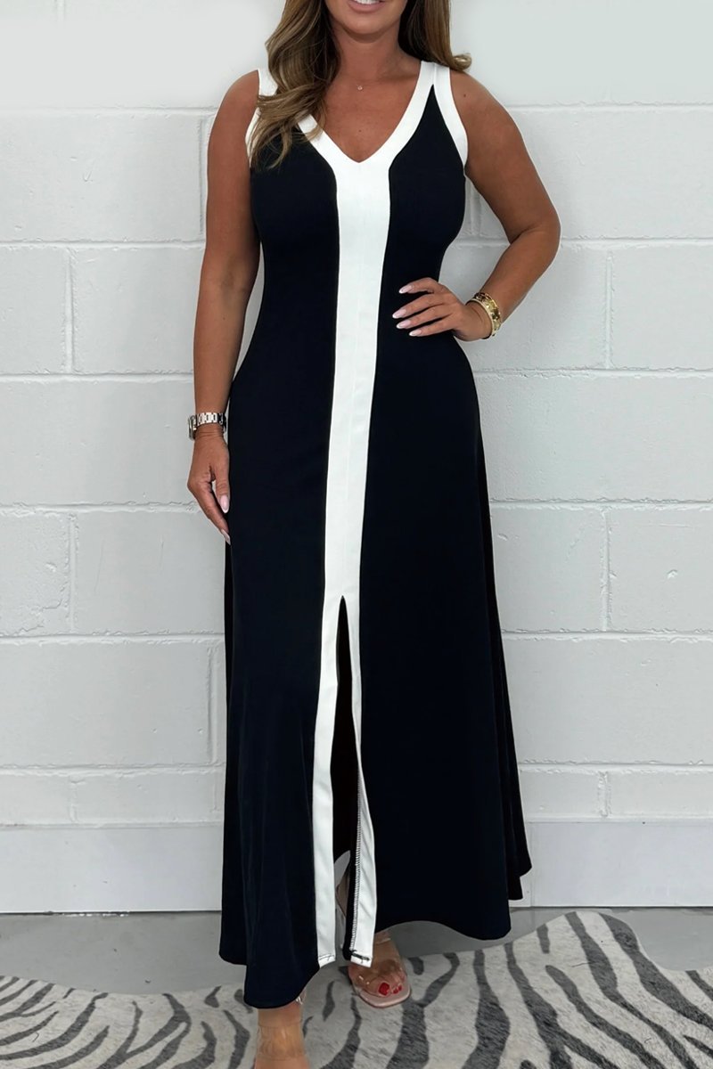 Los paneles estructurados que recorren el vestido no solo añaden un toque de diseño moderno, sino que también estiliza visualmente tu cuerpo.